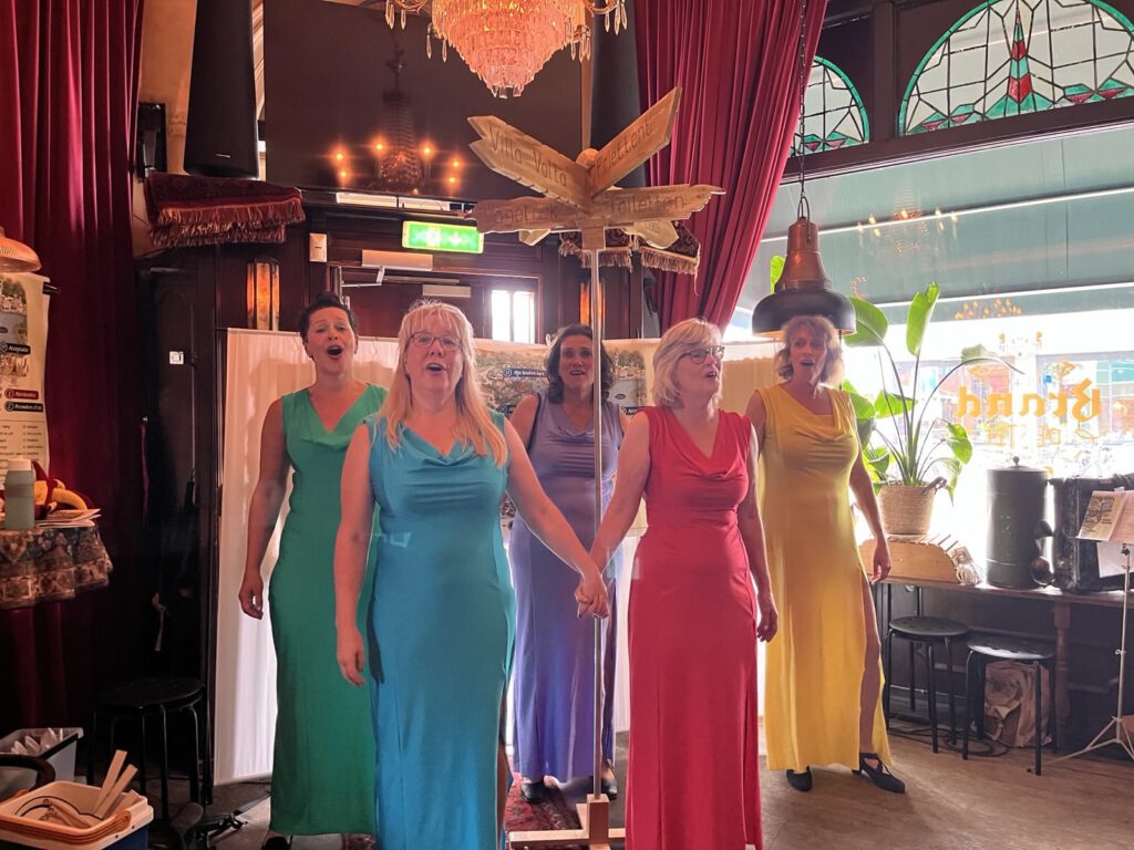 Voor een energieke, ambitieuze amateurzangeres is er bij ons altijd plek (en hangt er een mooie gekleurde jurk voor klaar!)